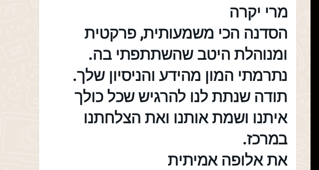 מעבר לתארים והסמכות, מה שמניע אותי הוא התשוקה לראותכם מצליחים. אני מאמינה שבכל אחד טמון פוטנציאל אדיר, ושעם הכוונה נכונה וכלים מתאימים, אין גבול להישגים.
